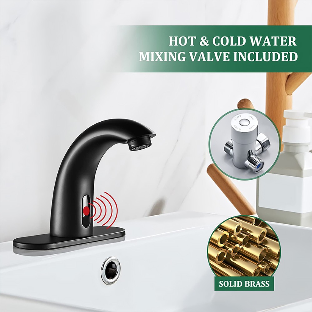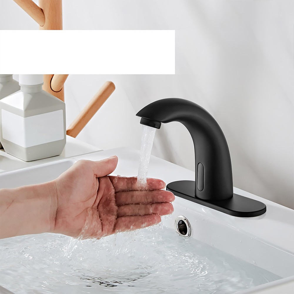 Hygienic and Convenient: Equipped with a high-precision infrared sensor, this matte black automatic sensor faucet automatically dispenses water when a hand approaches and stops when the hand is removed. No need to touch the faucet, reducing cross-contamination of bacteria and improving bathroom hygiene and convenience.