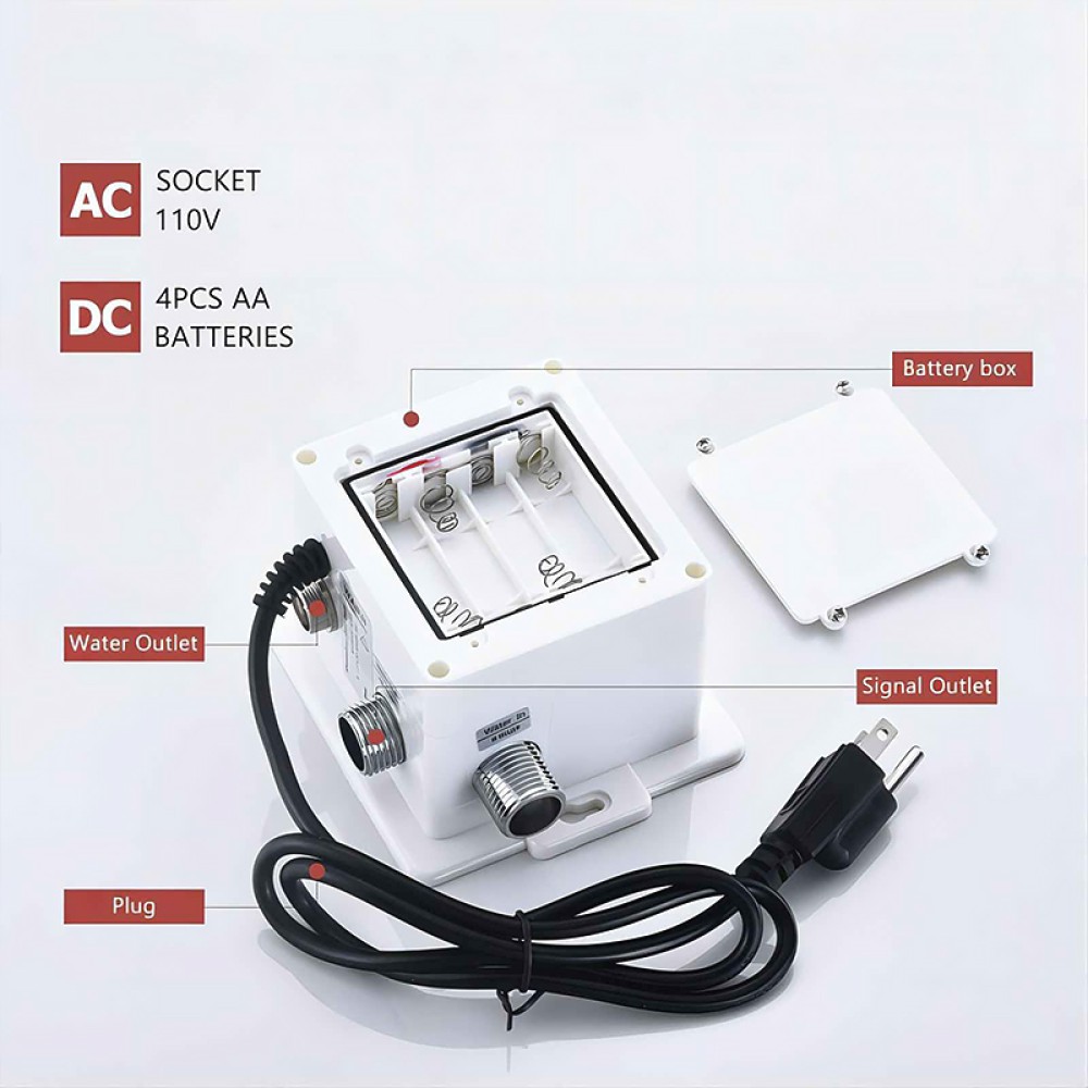 Flexible and Safe: The sensor supports two power supply modes: 4 AA batteries or 110V AC power. It can be freely selected according to the usage scenario, suitable for both home and public places, and guarantees stable operation.