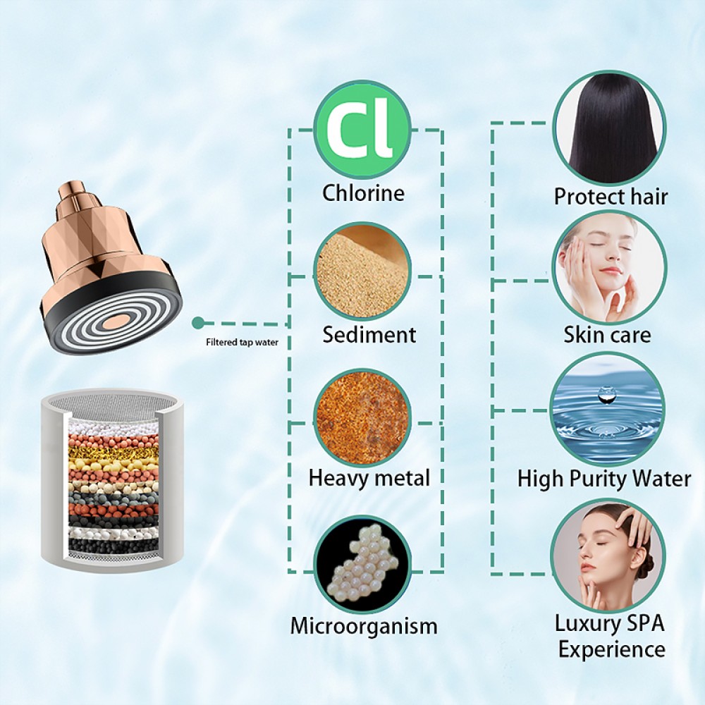 Heavy Metal and Microorganism Filtration: The filter layer effectively blocks and reduces the amount of heavy metals such as lead and copper that may be present in old pipes, thus preventing them from entering the shower water. The filtration structure also intercepts some microorganisms, resulting in purer water and improved shower hygiene.