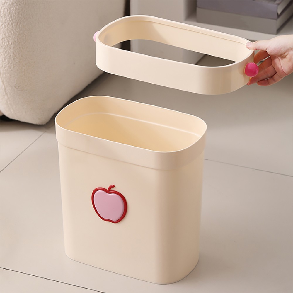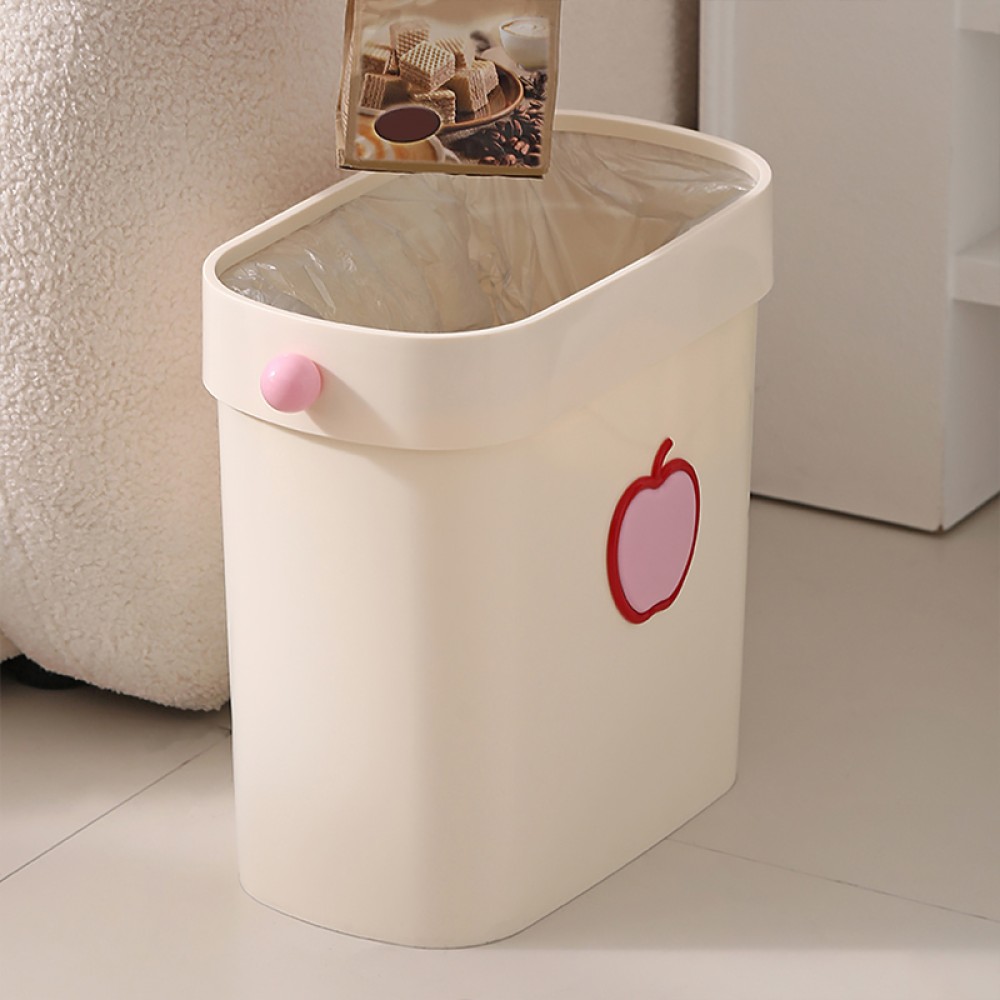 3D Apple Pattern Decoration: Featuring a 3D apple design, the shape is fun and injects more vitality and visual appeal into the traditional narrow garbage bin. Its fresh and bright appearance is suitable for home bathrooms, kitchens, laundry rooms, etc., bringing a touch of lightness and playfulness to the space, and is more appealing to young families and children.