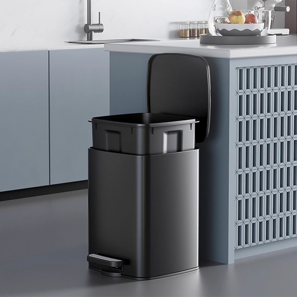 Foot-operated Automatic Closing:Equipped with a foot-operated lid opening mechanism, the trash can lid opens with a light step. The lid closes smoothly and reliably, requiring no force and closing silently. It's convenient, hygienic, and suitable for kitchens, bathrooms, or office environments.