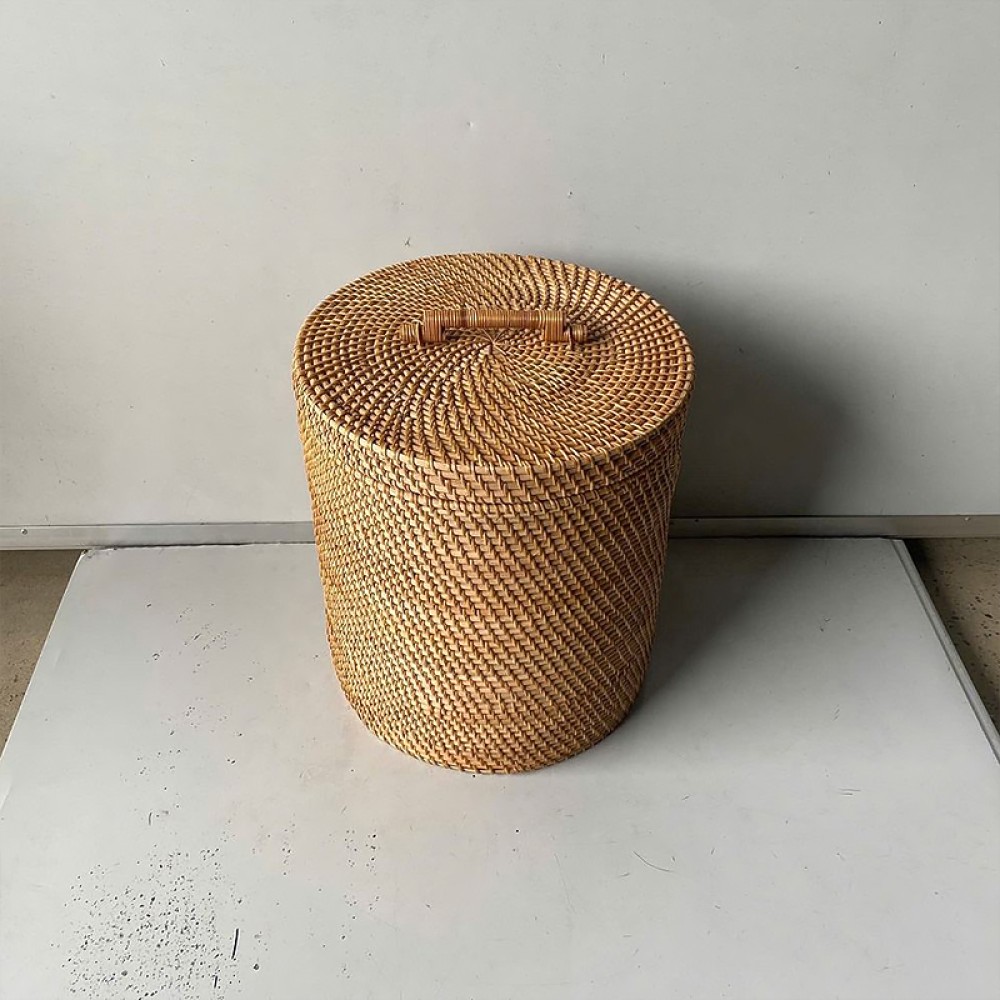 Dustproof and Beautiful: A handle-operated rattan lid is included, maintaining a unified style. The lid effectively prevents dust and odors from escaping, while keeping the space tidy; the handle makes it easy to open, close, and move, offering greater flexibility.