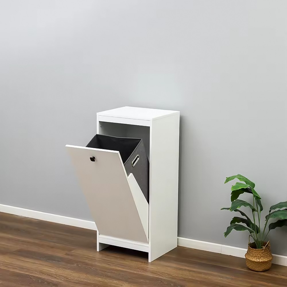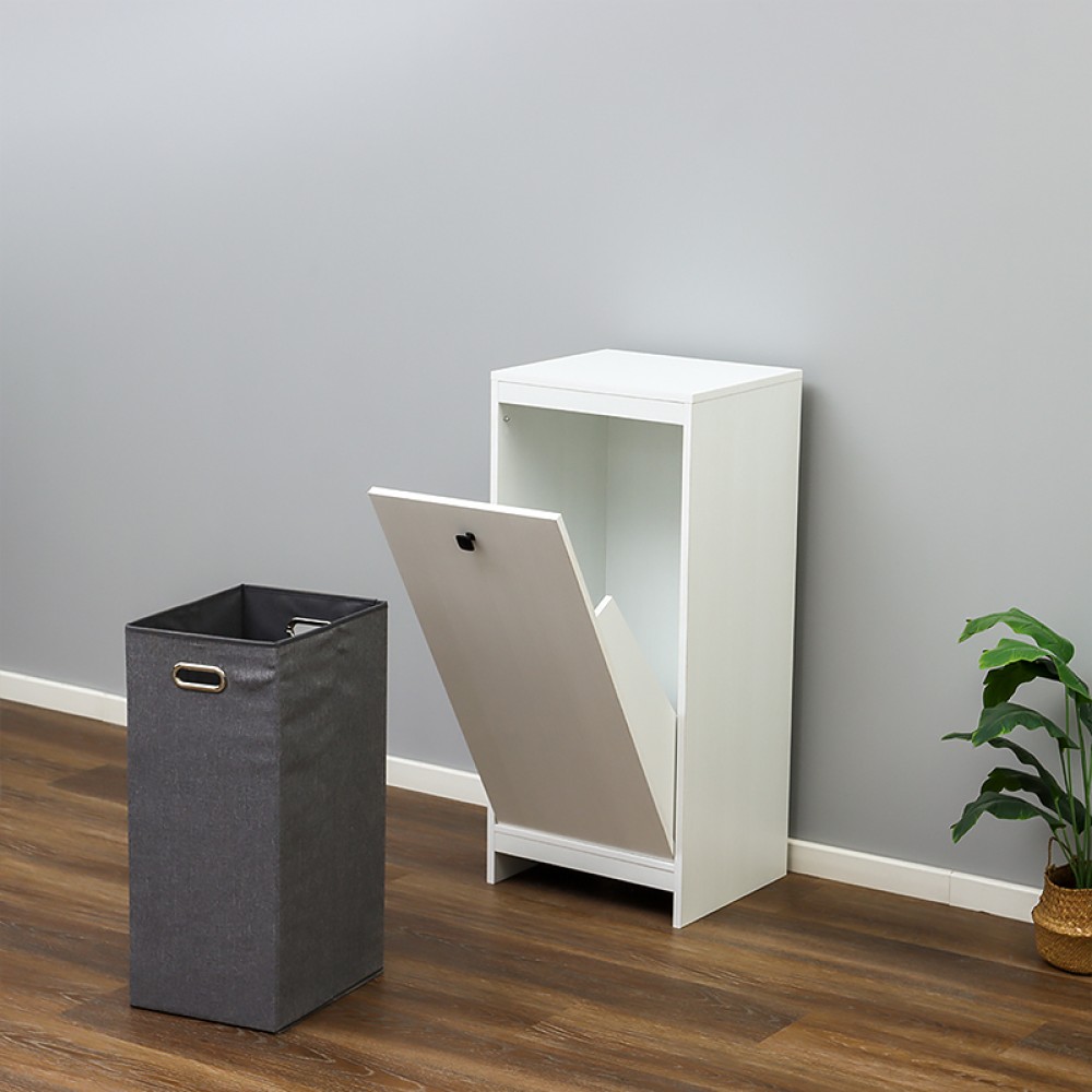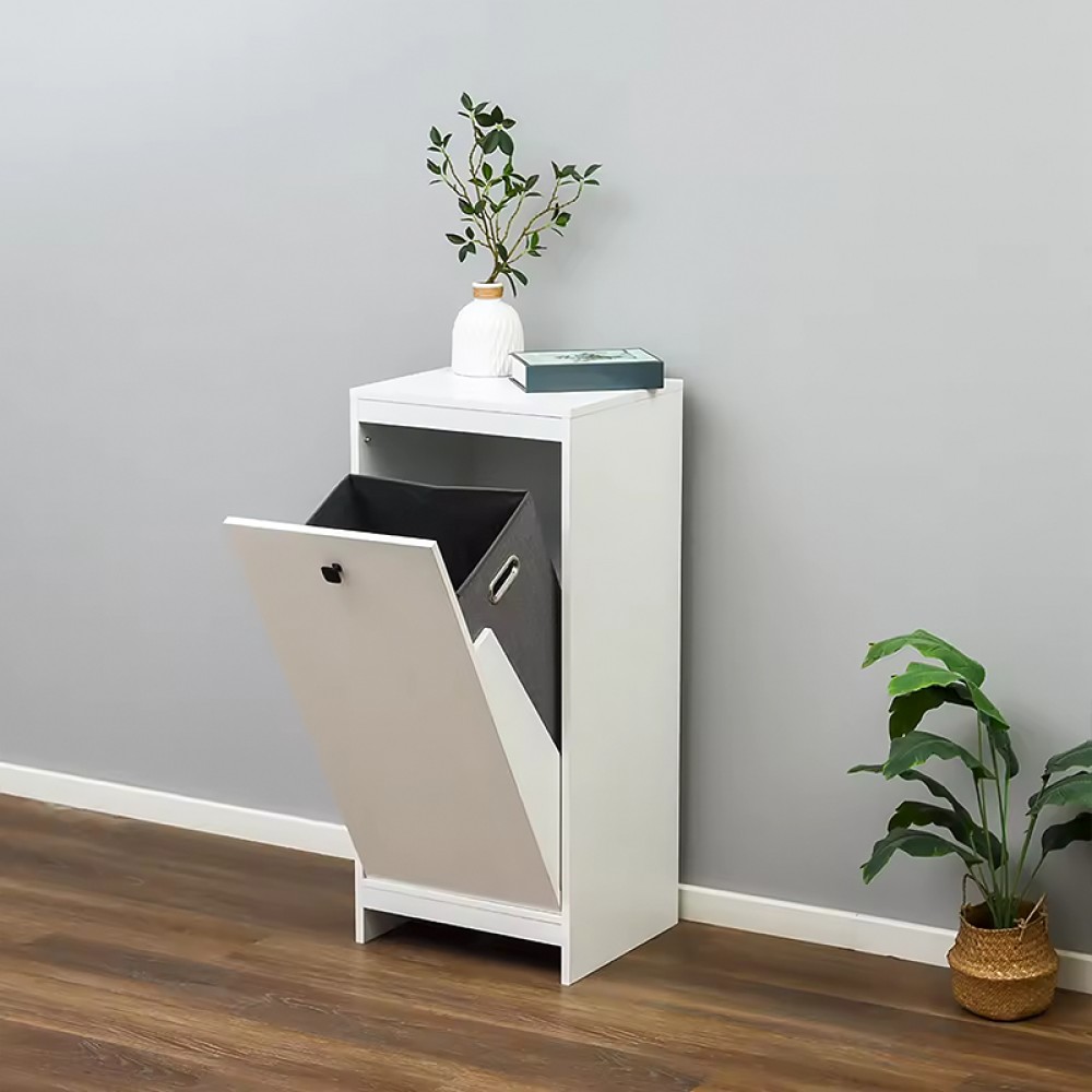 Functionality and Aesthetics Combined: The laundry basket cleverly integrates storage space with the cabinet structure, managing dirty clothes centrally while maintaining a clean and unified visual appearance, making it a practical storage solution for bathrooms or laundry rooms.
