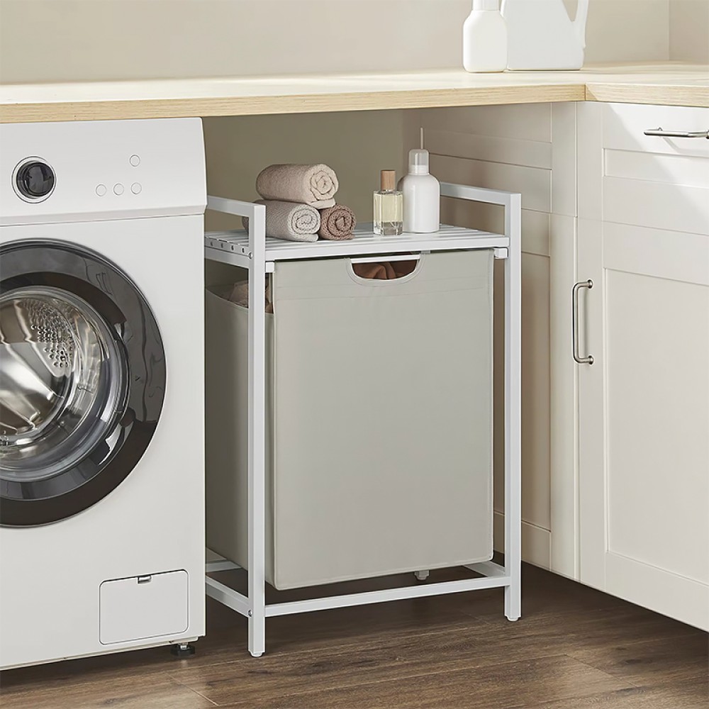 Multi-Level Compartment Storage: The lower internal divider effectively categorizes clothes, keeping them neat and organized; the top shelf provides additional storage space for small items or laundry supplies.