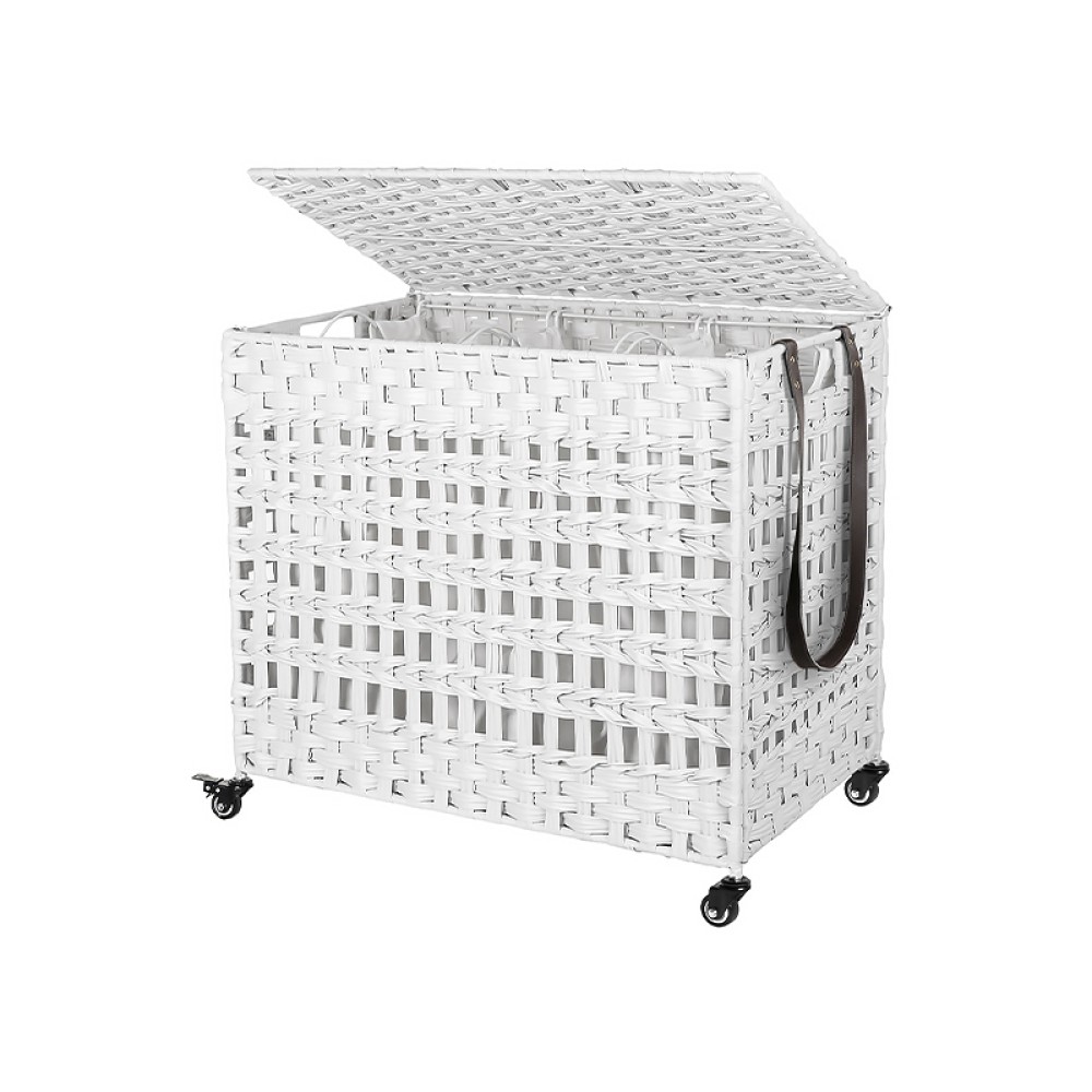 Three-Tier Compartment Storage: The interior is divided into three compartments, allowing for simultaneous organization of different types of clothing, such as light-colored, dark-colored, and towels, keeping clothes neat and organized and improving household laundry efficiency.