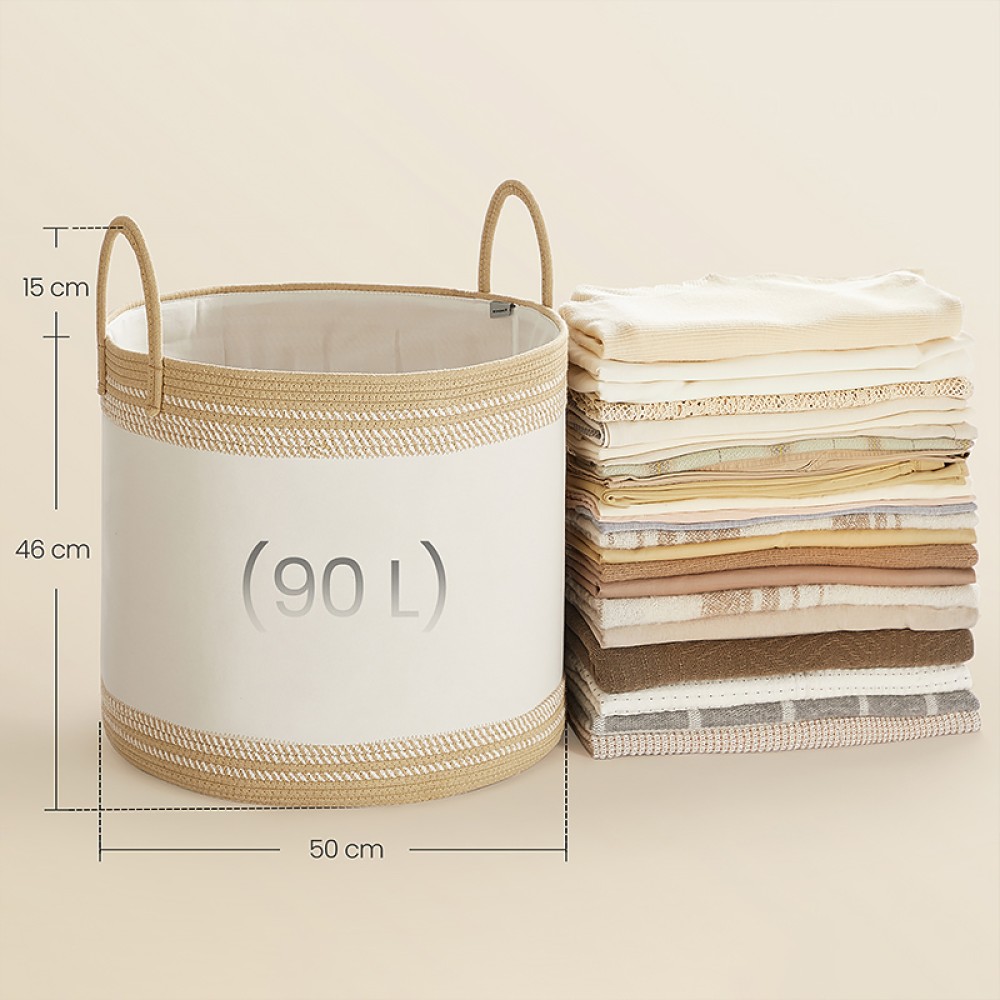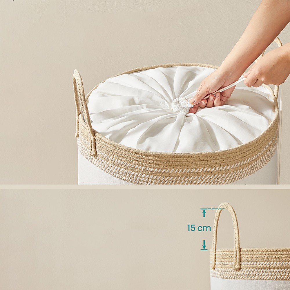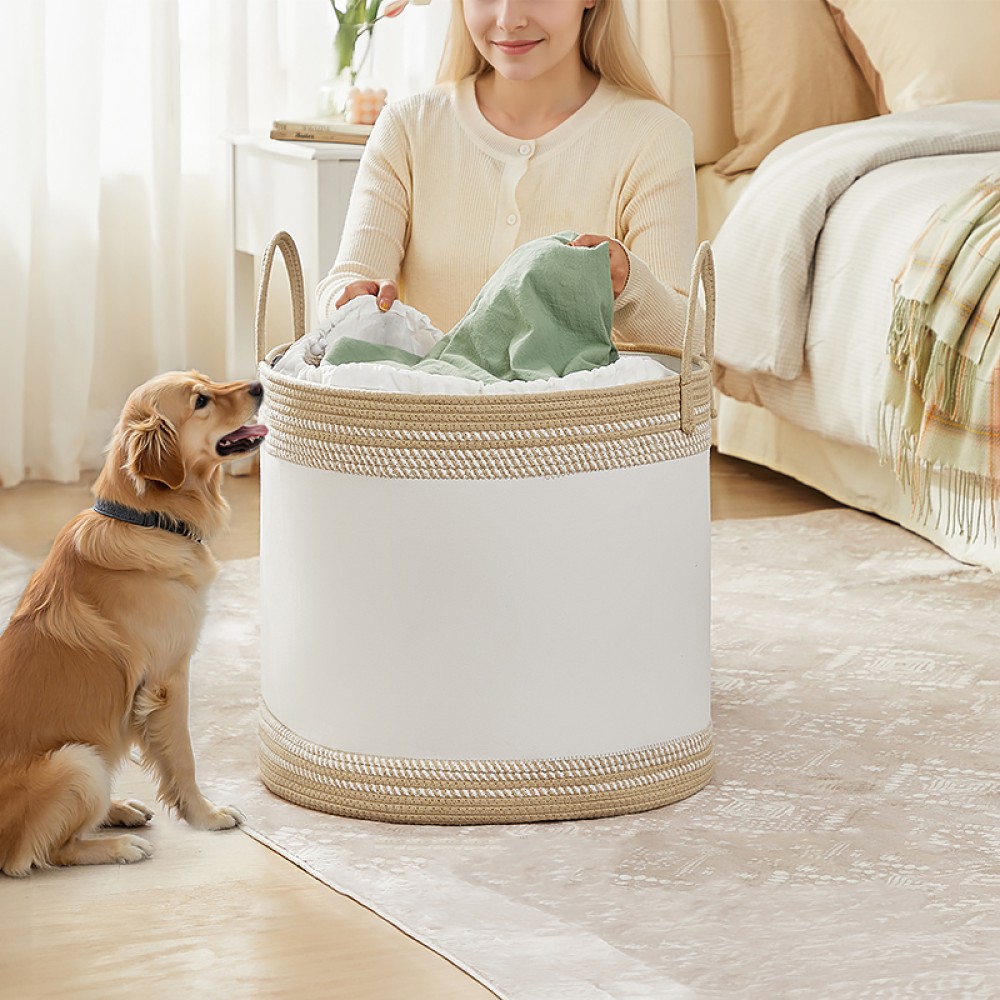Combining practicality and aesthetics: It can be used to store dirty clothes, towels, toys, bedding, etc., and can also be used as a living room storage basket. The natural cotton rope and contrasting color design make it suitable for a variety of home styles, including Scandinavian, modern minimalist, and natural styles.