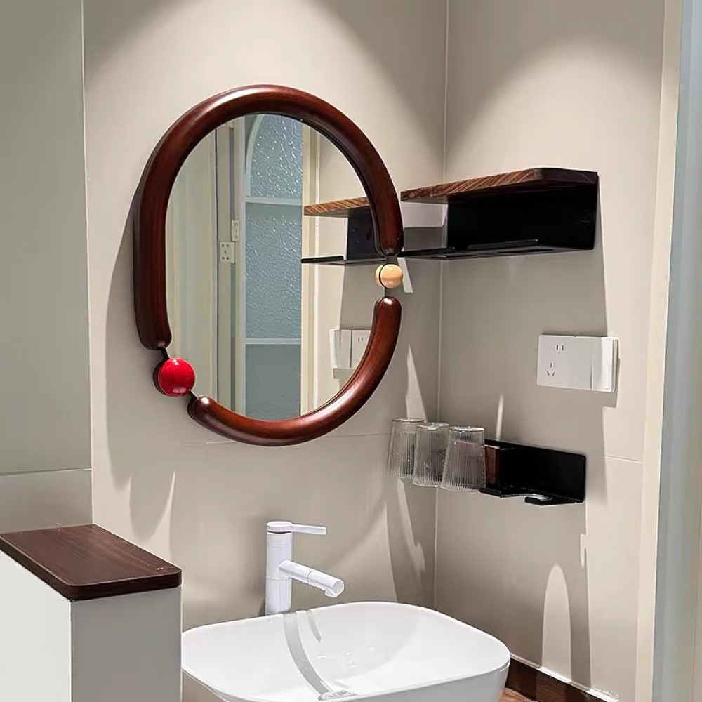 Multi-Scene Applicable: Suitable for family bathrooms, sinks, dressing areas, or bedroom dressing areas. The faux wood frame combined with an irregular shape easily blends into modern, Scandinavian, or understated luxury spaces, balancing practicality and aesthetics.