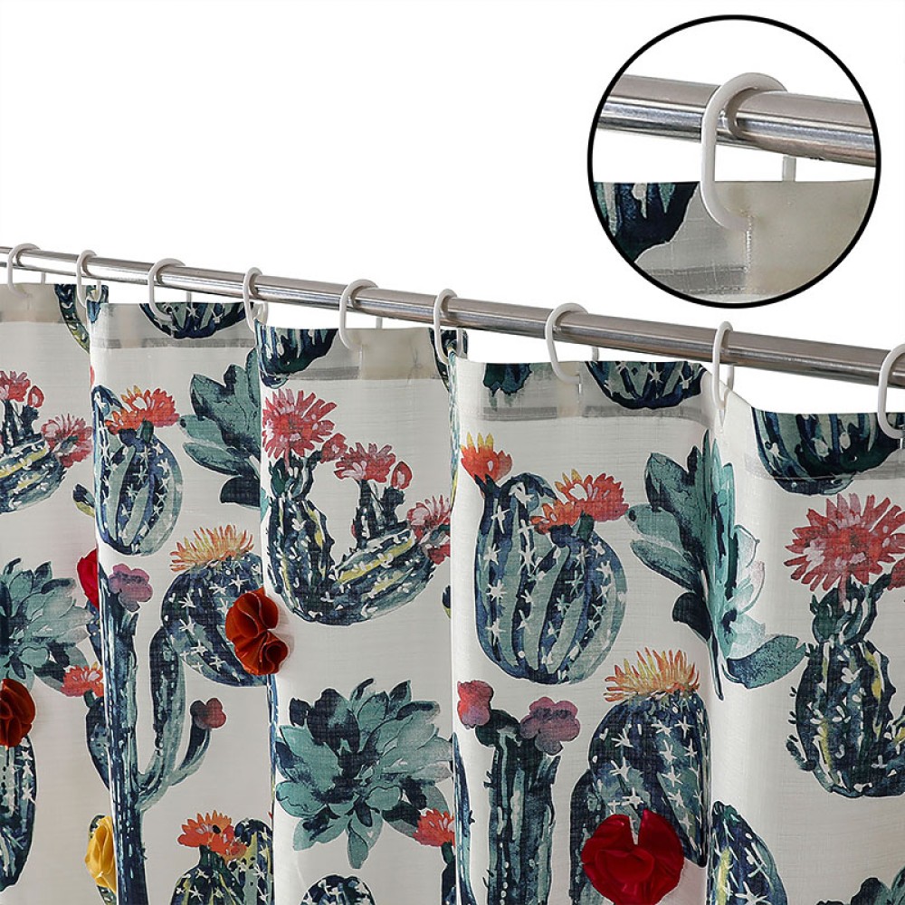 Cactus Print Design: The shower curtain features a cute cactus print pattern, full of natural charm and fun, adding a warm and refreshing element to the bathroom, making it perfect for family use.